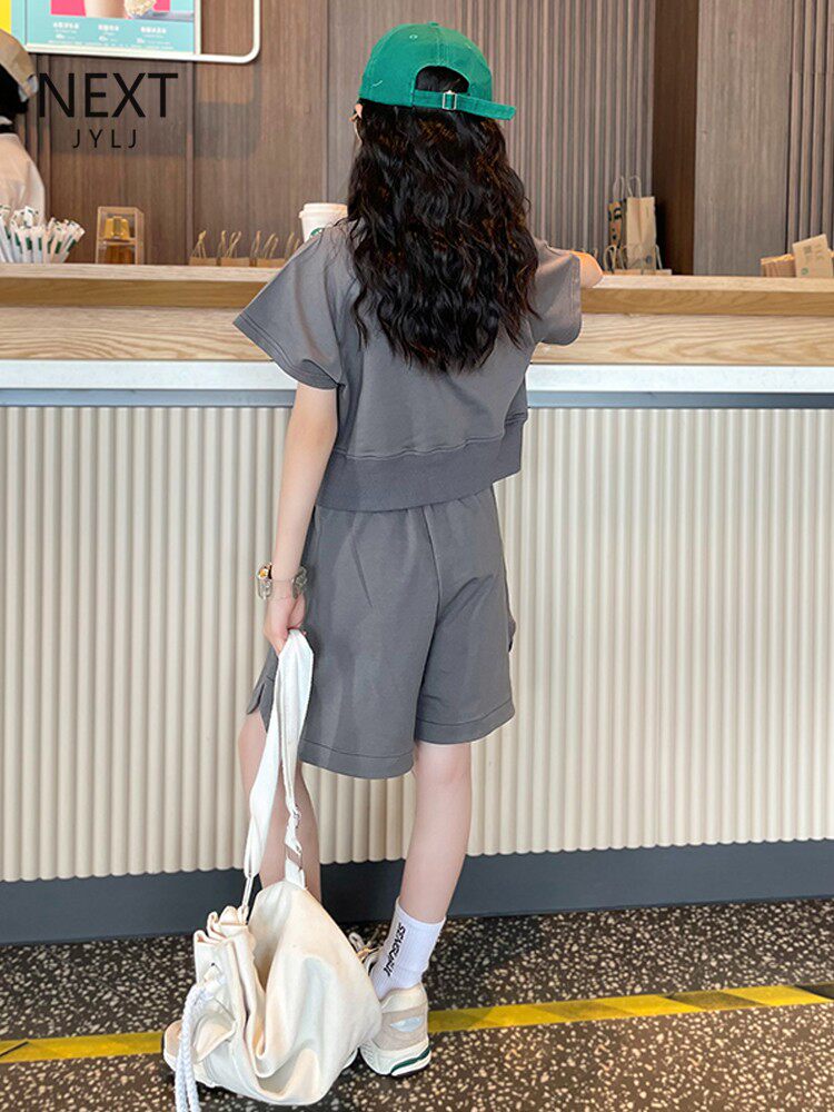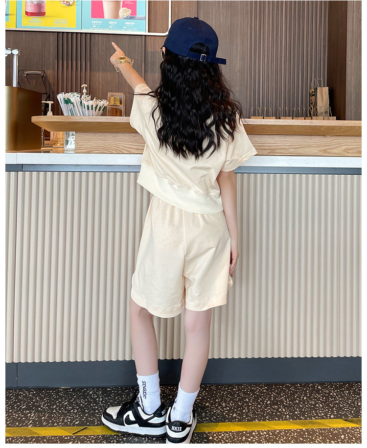 うさぎモチーフの刺繍が入ったTシャツとショートパンツの上下セット。