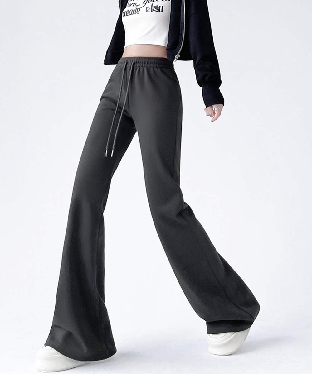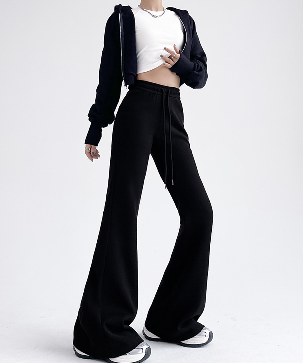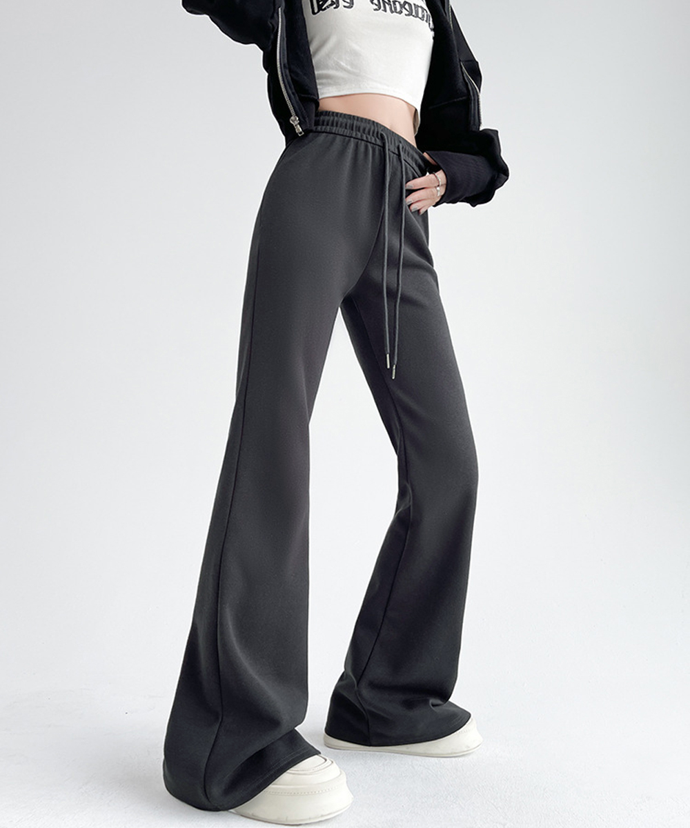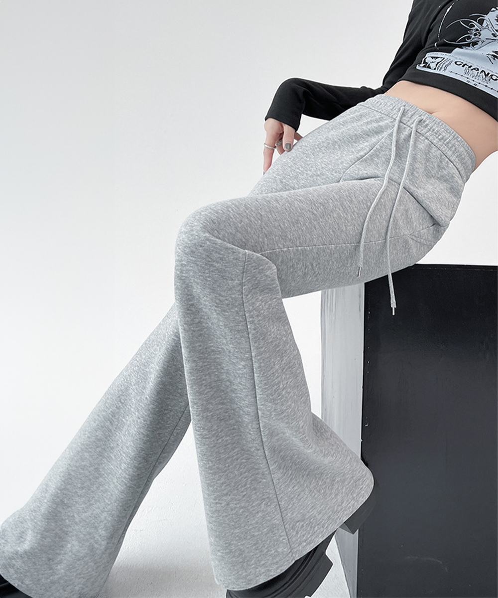 裾に向かって広がるフレアシルエットが美脚ラインを演出するスウェットパンツです。