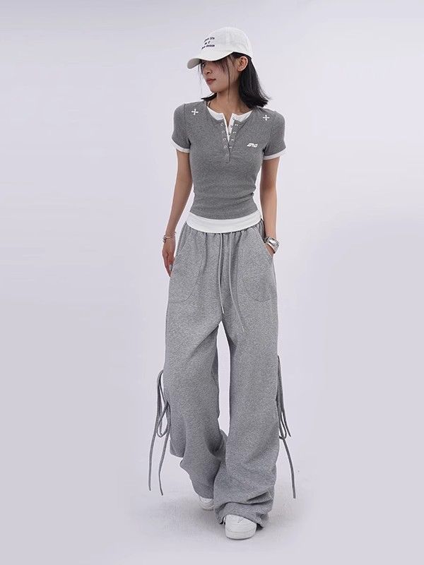 個性的なデザインが目を引くワイドシルエットのスウェットパンツです。