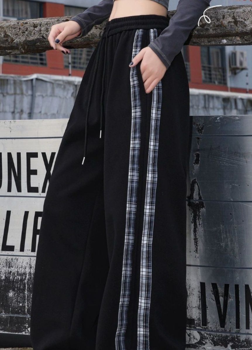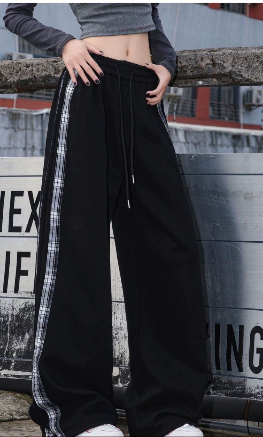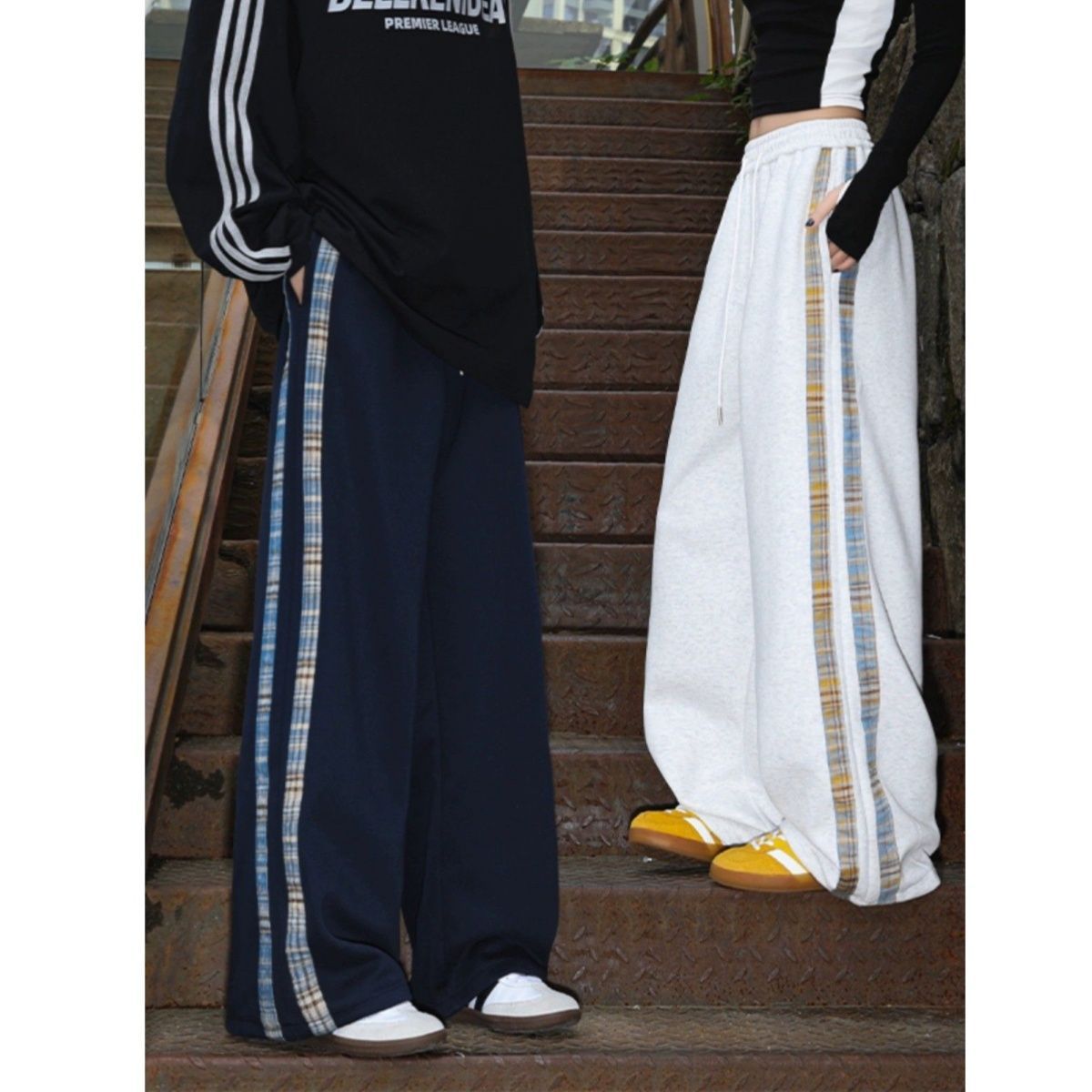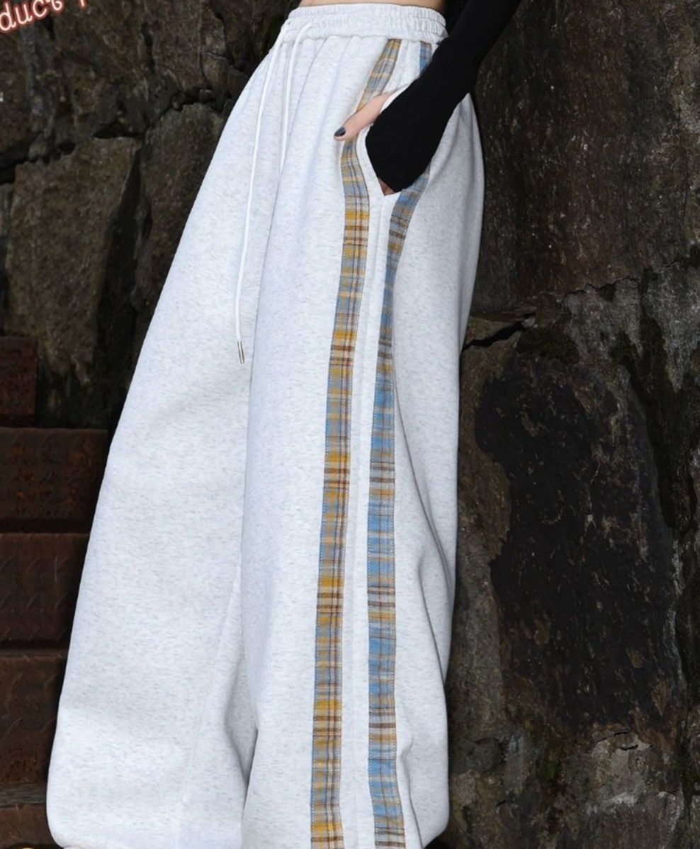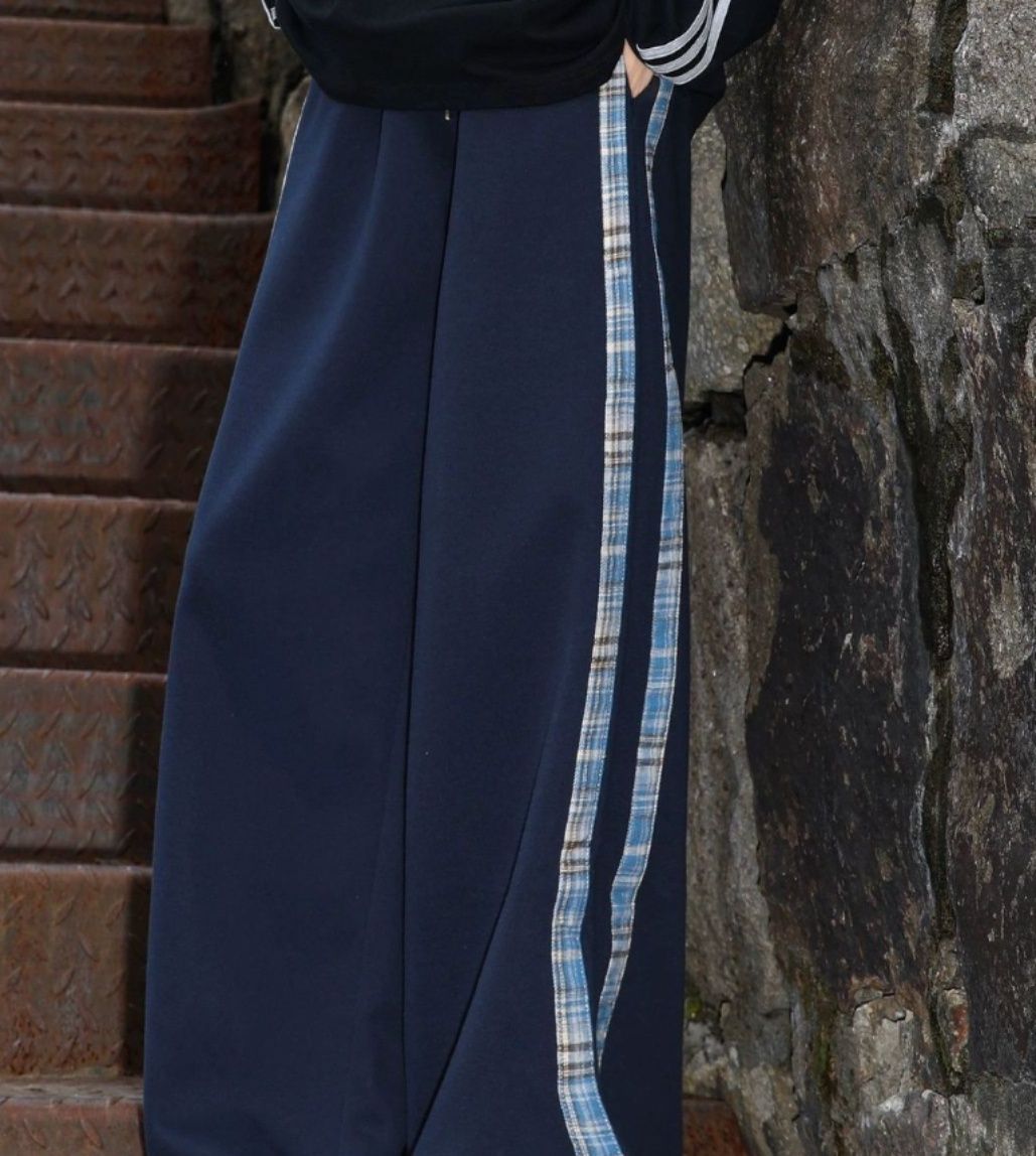 サイドに格子柄のラインをあしらった個性的なデザインのスウェットパンツです。